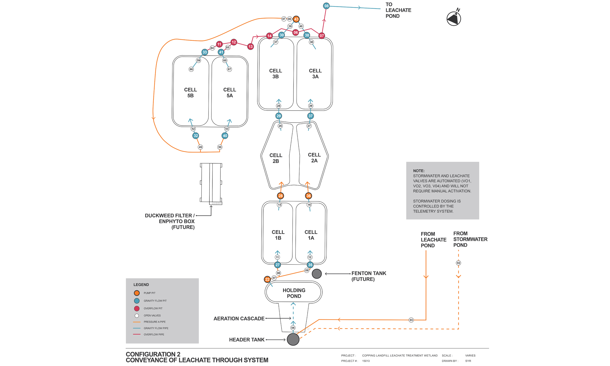 The system operates as a fully closed-circuit system, with treated leachate returned to the leachate storage lagoons for evaporation. The system was designed to allow cells to run in parallel (duplicate) to enable